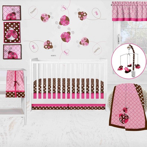 Bacati Ladybugs Pink Chocolate 10 Pc Crib Bedding Set With 2 Very well made.