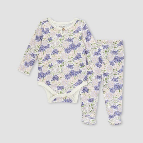 Burt s Bees Baby Girls Floral Bundle Bodysuit Footed Pant Set Very well made.
