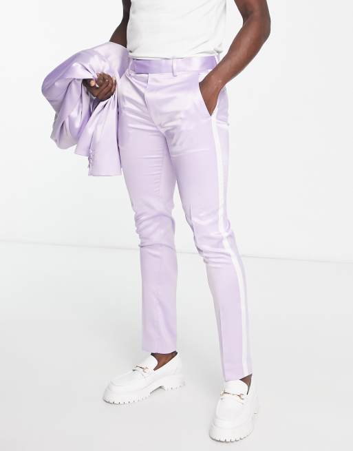 ASOS DESIGN skinny suit trousers with side stripe in lilac Very well made.