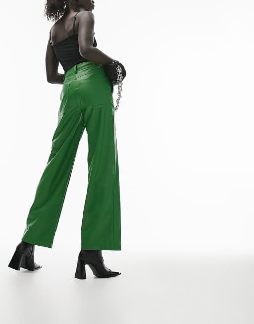 Topshop Petite faux leather wide leg trouser in green ASOS Very well made.