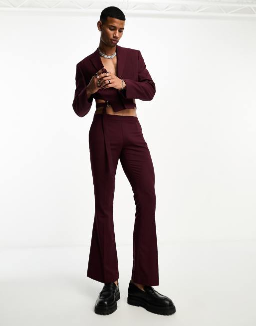 ASOS DESIGN low rise flare suit trouser in burgundy ASOS Very well made.