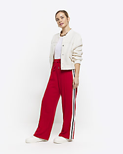 Petite red side stripe wide leg joggers River Island Very well made.