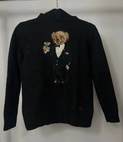 Polo Ralph Lauren Martini Bear Hooded Knit Sweater Black Size Very well made.