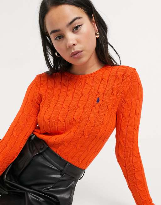 POLO RALPH LAUREN CABLE KNIT WOOL CASHMERE SWEATER Orange Women Very well made.