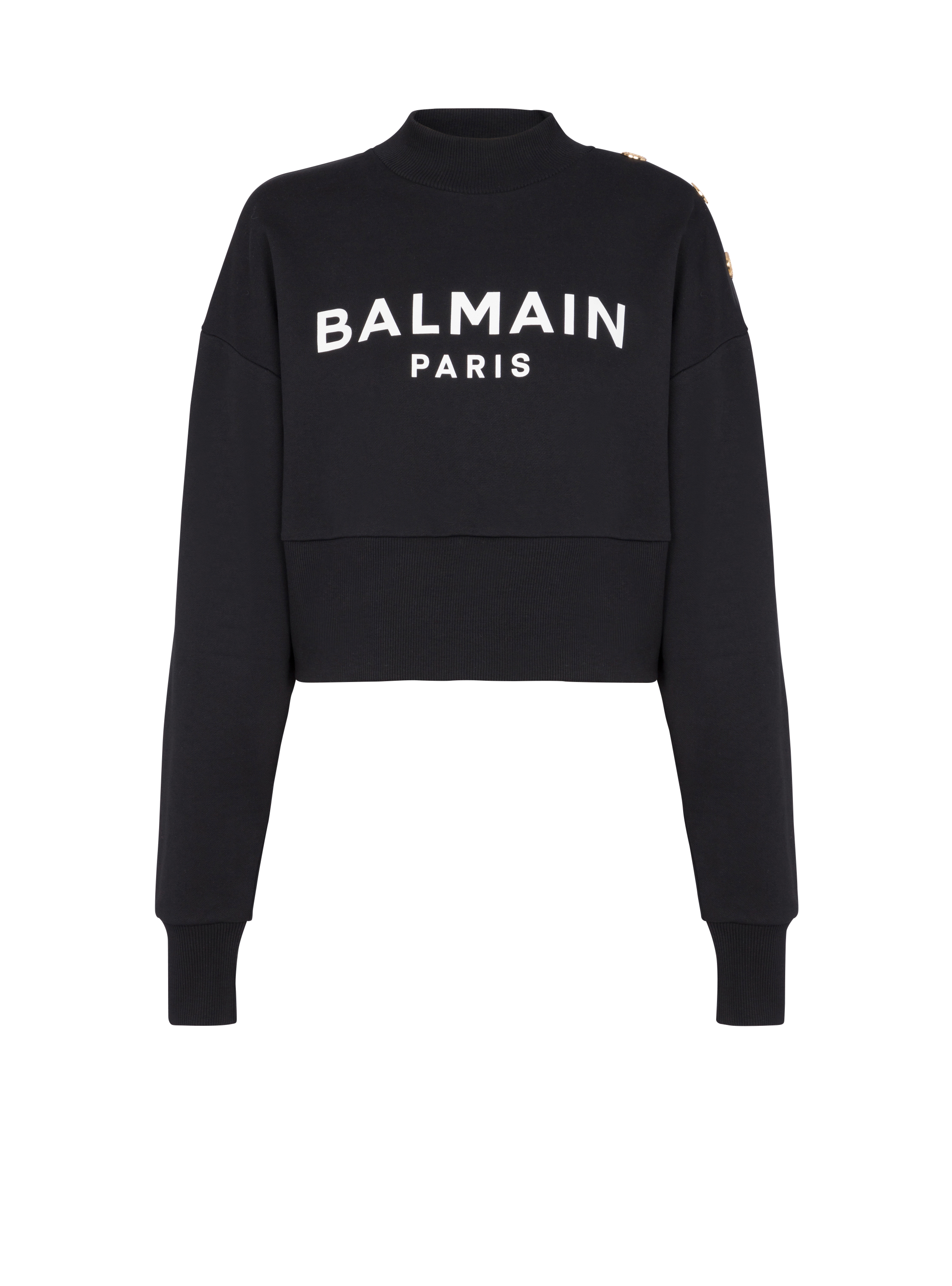 Eco responsible cotton cropped sweatshirt with Balmain logo print Very well made.