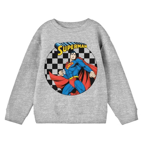 Superman Character with Logo and Checkered Background Youth Heather Gray Crew Neck Sweatshirt XS Very well made.