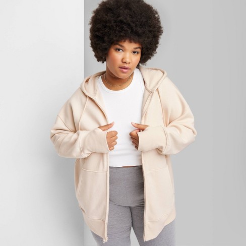 Women s Oversized Zip Up Hoodie Wild Fable Beige 3X Very well made.
