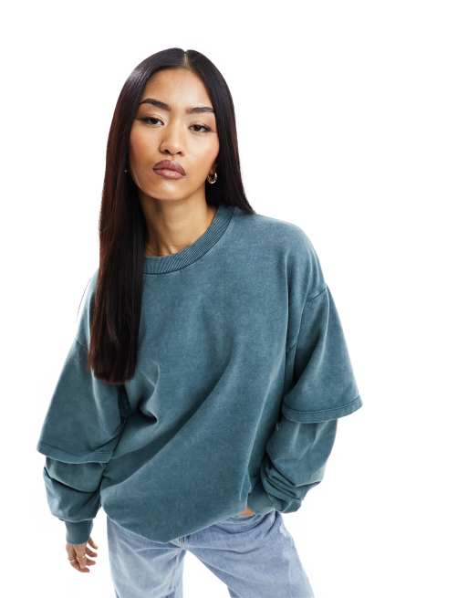 ASOS DESIGN oversized sweatshirt with double layered sleeve in washed blue Very well made.