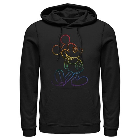 Men s Mickey Friends Rainbow Mickey Mouse Outline Pull Over Hoodie Black Small Very well made.
