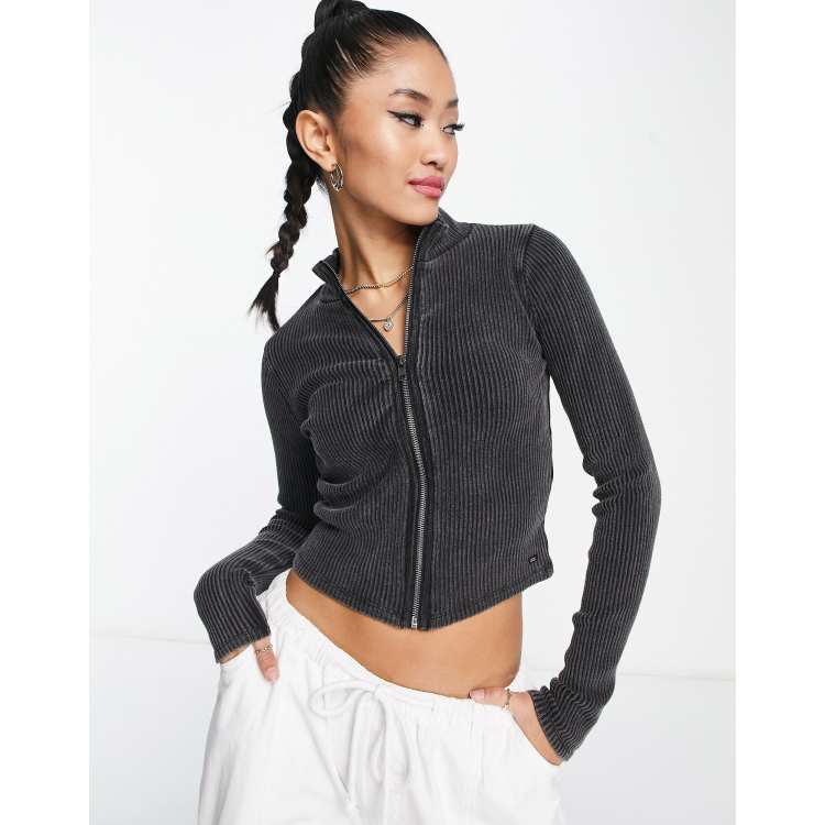 Spring hue Women s Zipper Ribbed Crop Top Tight Elastic Shirt Party Club Streetwear Very well made.