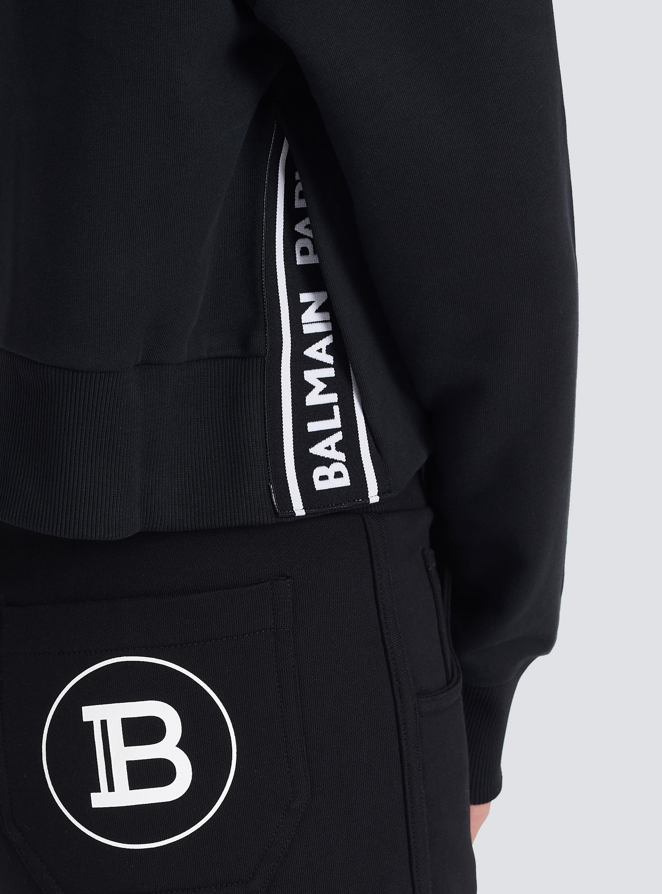 Eco designed cotton sweatshirt with flocked Balmain logo black Very well made.