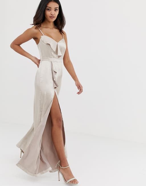 The Girlcode satin jumpsuit with frill detail and split leg in cream Very well made.
