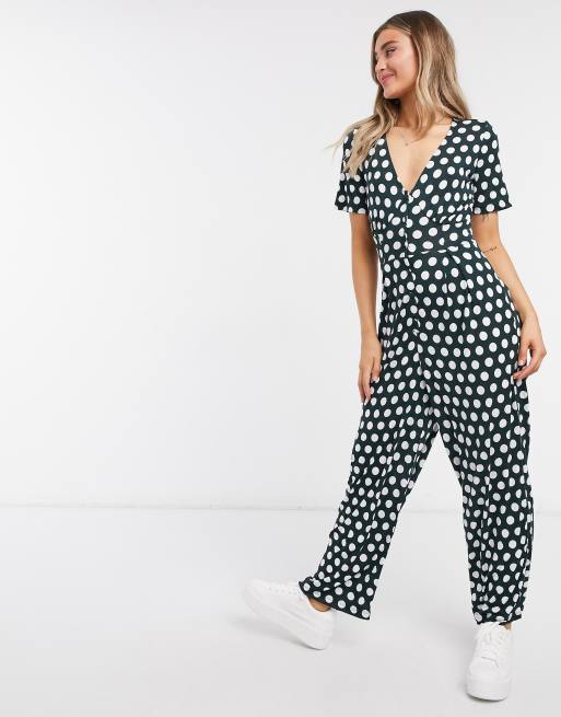 ASOS DESIGN button front tea jumpsuit in dark green spot Very well made.