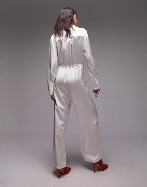 Topshop satin cargo jumpsuit in ivory ASOS Very well made.