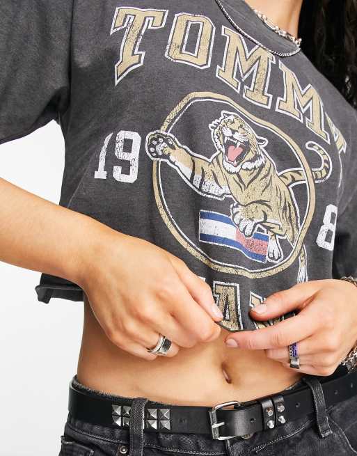Tommy Jeans cotton college tiger super crop T shirt in black Very well made.