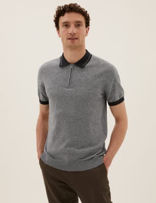 Cotton Striped Zip Neck Knitted Polo Shirt M S Collection M S Very well made.