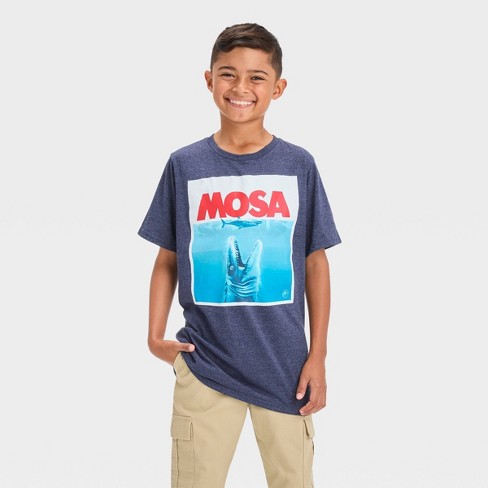 Boys Jurassic World Mosa Short Sleeve Graphic T Shirt Navy Blue XS Very well made.