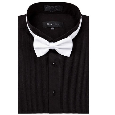 Marquis Men s Black Regular Fit Wing Tip Collar Tuxedo Dress Shirt Very well made.