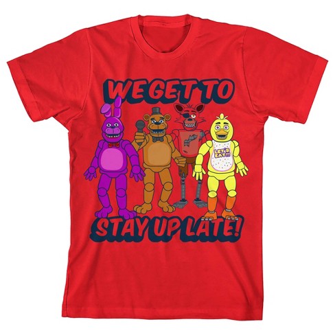 Five Nights at Freddy s We Get to Stay Up Late Boys Red T shirt Small Very well made.