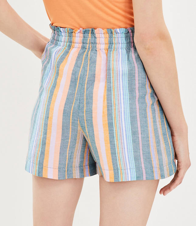 Linen Blend Curved Hem Shorts in Stripe Very well made.