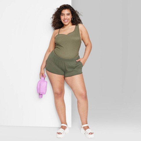 Women s Mid rise Pull on Shorts Wild Fable Olive Green Xxl Target Very well made.