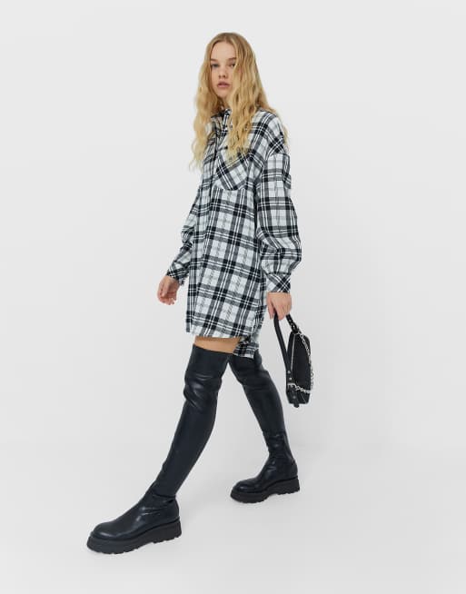 Stradivarius oversized boyfriend shirt dress in gray plaid ASOS Very well made.