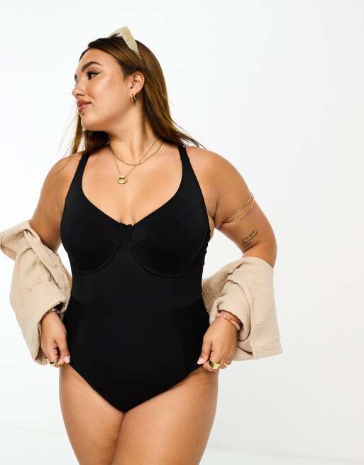 ASOS DESIGN Curve underwired contour swimsuit in black ASOS Very well made.