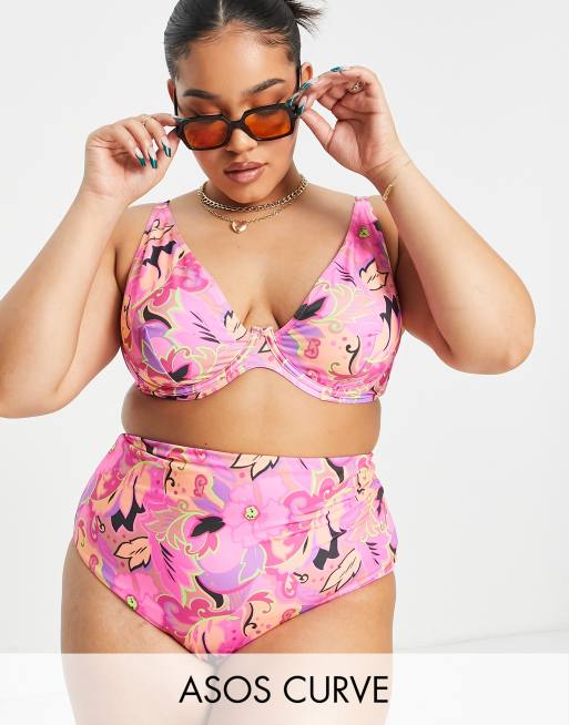 ASOS DESIGN Curve mix and match high waist bikini bottom in bold floral Very well made.
