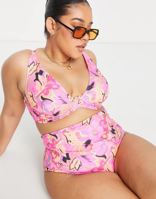ASOS DESIGN Curve mix and match step front underwire bikini top in bold floral print Very well made.