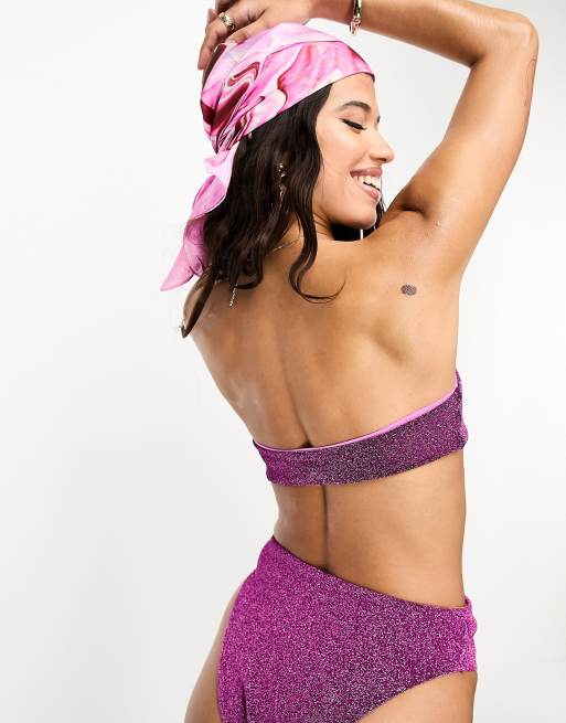 ASOS DESIGN mix and match glitter ring bandeau bikini top in pink Very well made.