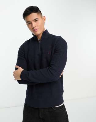 Tommy Hilfiger flag logo half zip sweater in navy ASOS Very well made.
