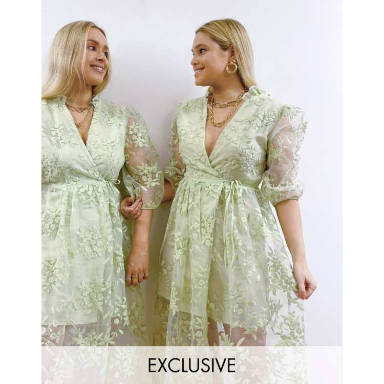 Labelrail x Olivia Alice floral embroidery midaxi dress in green Very well made.
