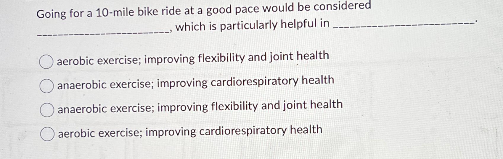 Solved Going for a 10 mile bike ride at a good pace would be Very well made.