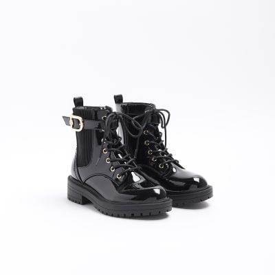 River Island Girls Black patent chunky lace up ankle boots ShopStyle Very well made.
