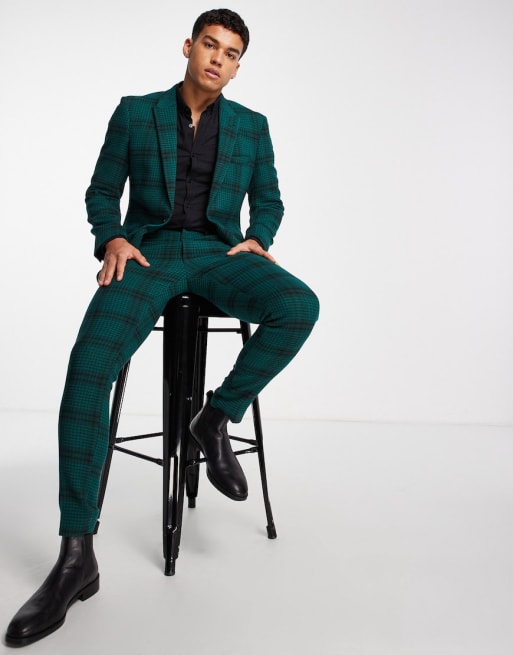 ASOS DESIGN skinny wool mix suit in dark green and navy large Very well made.