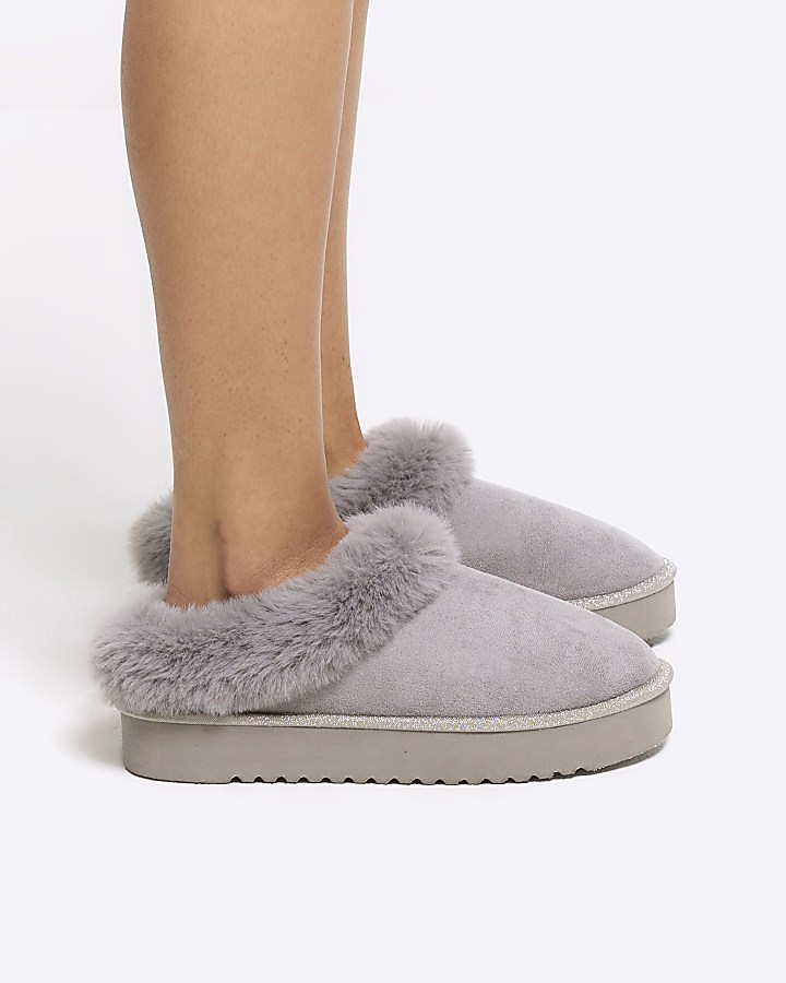 Grey faux fur platform slippers River Island Very well made.