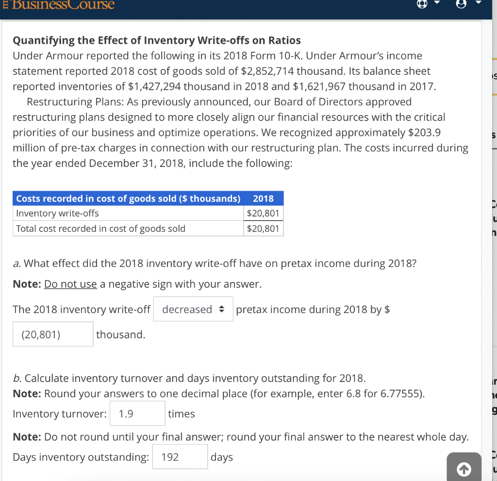 Solved Quantifying the Effect of Inventory Write offs on Ratios Very well made.