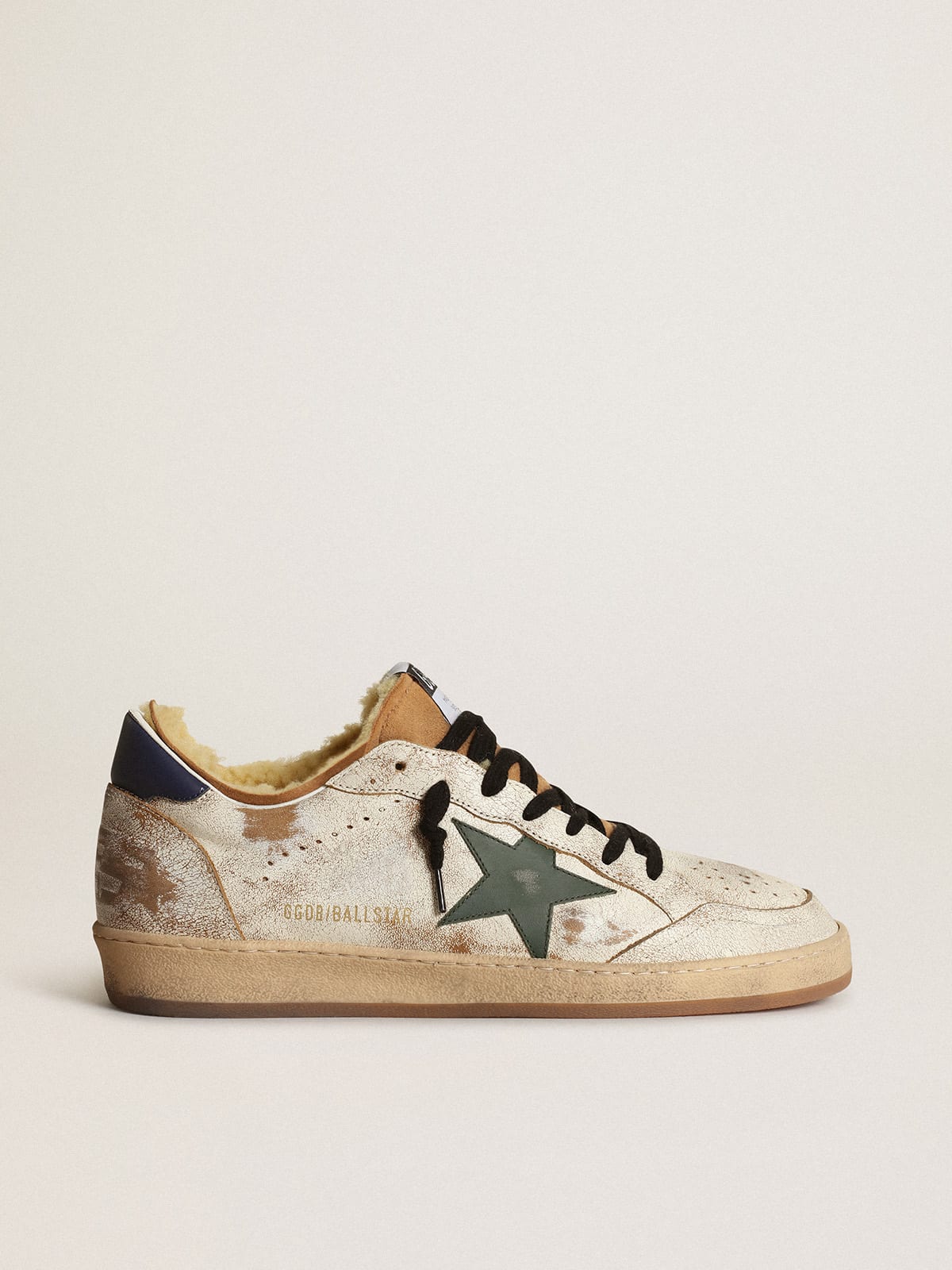 Ball Star sneakers in glossy white leather with dark green leather star and shearling lining Very well made.