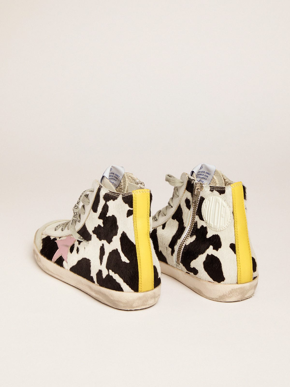 Francy sneakers in cow print pony skin with pink laminated leather star Very well made.