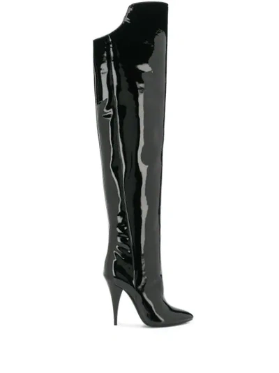 SAINT LAURENT Kiki Point Toe Patent Leather Boots in Black Endource Very well made.