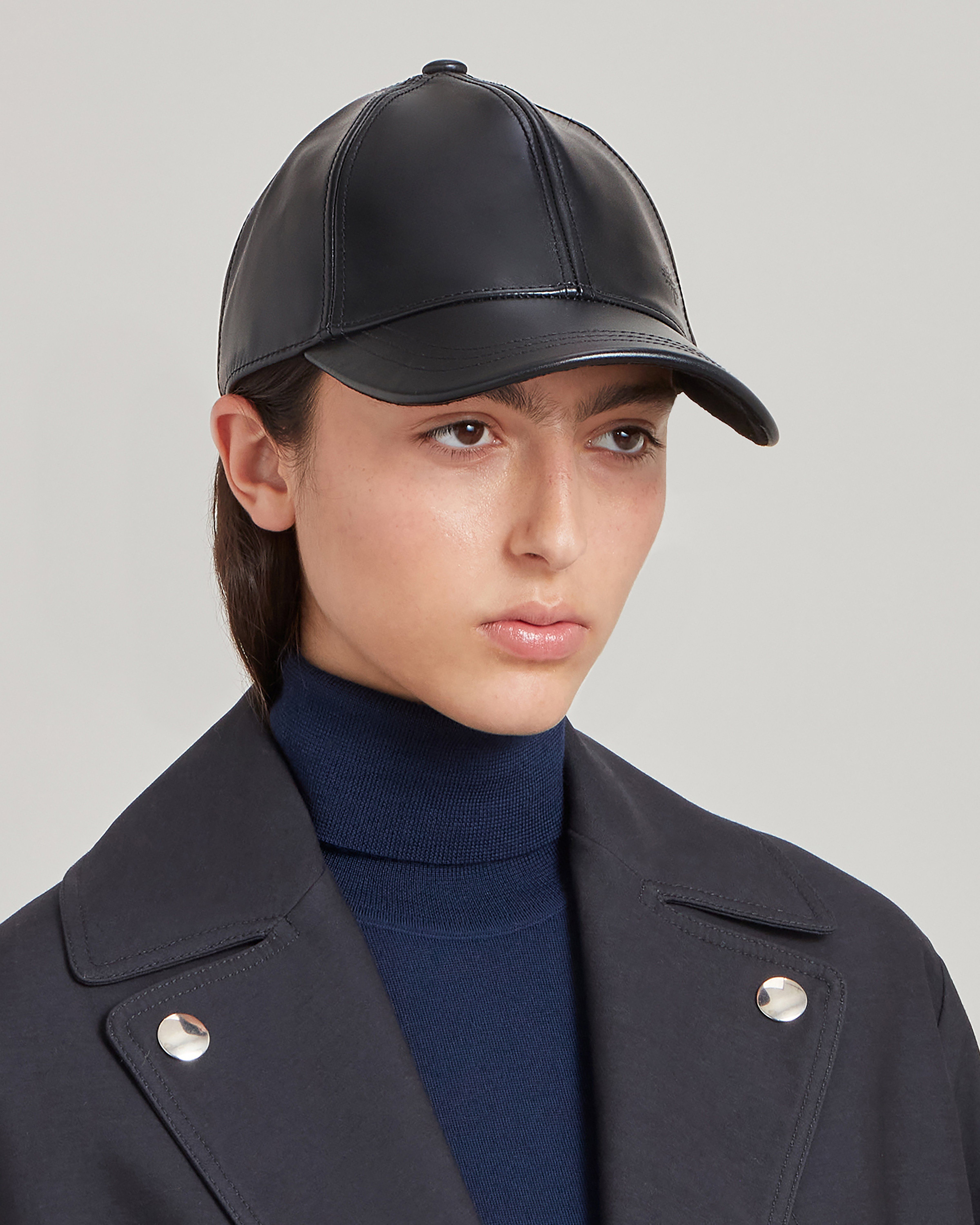 Leather Baseball Cap Black Calf Skin Leather Women Mulberry Very well made.